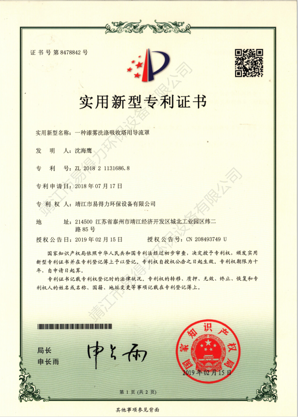 本公司坐落于開放開發(fā)超前城市江蘇靖江,我們精良優(yōu)秀設(shè)計(jì)團(tuán)隊(duì)始終遵循著創(chuàng)新超越的理念,贏得了中外合資企業(yè)的信賴。易得力環(huán)保設(shè)備有限公司與上海環(huán)科院等科研單位保持合作關(guān)系,不斷加大自身的科研力量,集中了一批國內(nèi)環(huán)境科技研究和應(yīng)用方面的高素質(zhì)人才,取得多項(xiàng)實(shí)用新型專利證書。…… 查看更多 >>